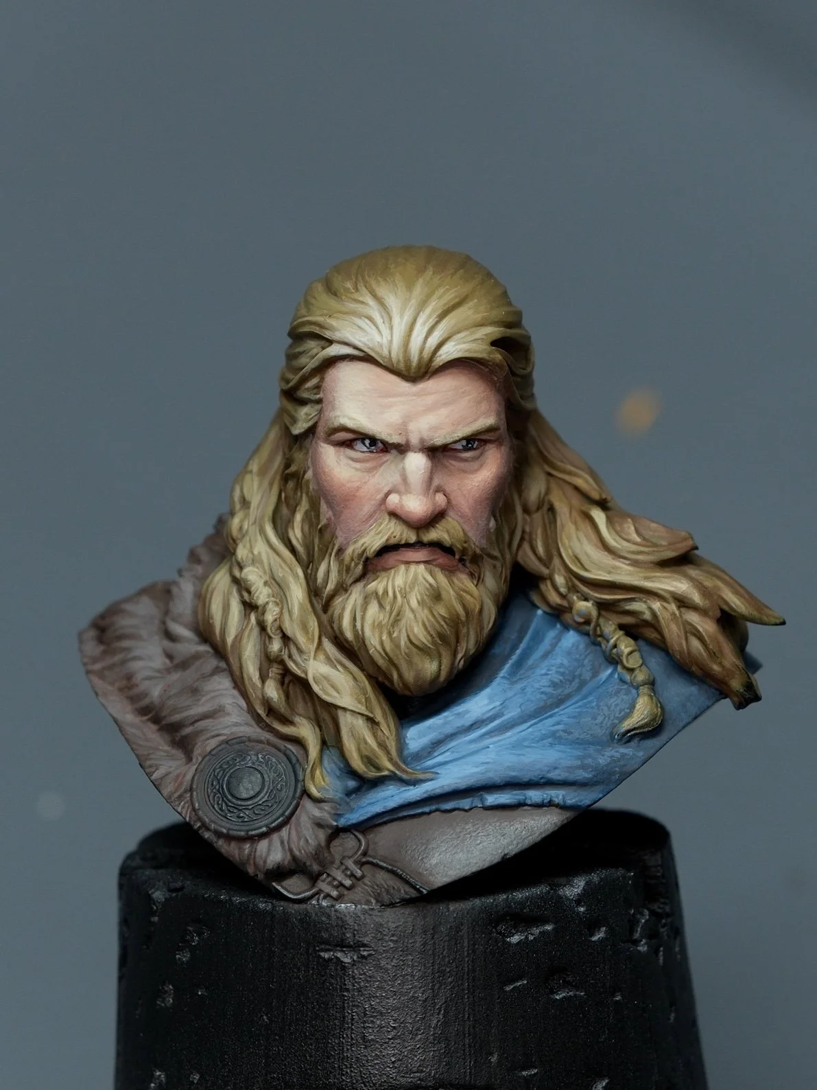 Over the weekend, I woke up at the crack of dawn to participate in Erik Swinson's free online class stream over on Twitch. We painted this exclusive bust sculpted by Joaquin Palacios and cast by Epic Tales. Goes to show that there is still so much to learn, challenges, and surprises along the way. In around just over 6 hours in the session, I was able to bring the bust to the stage shown, giving me a surprise in my workflow, and along with some helpful feedback through Erik's amazing endurance to screen through so many WIPS, help me with some corrections and ideas to keep with me moving forward.