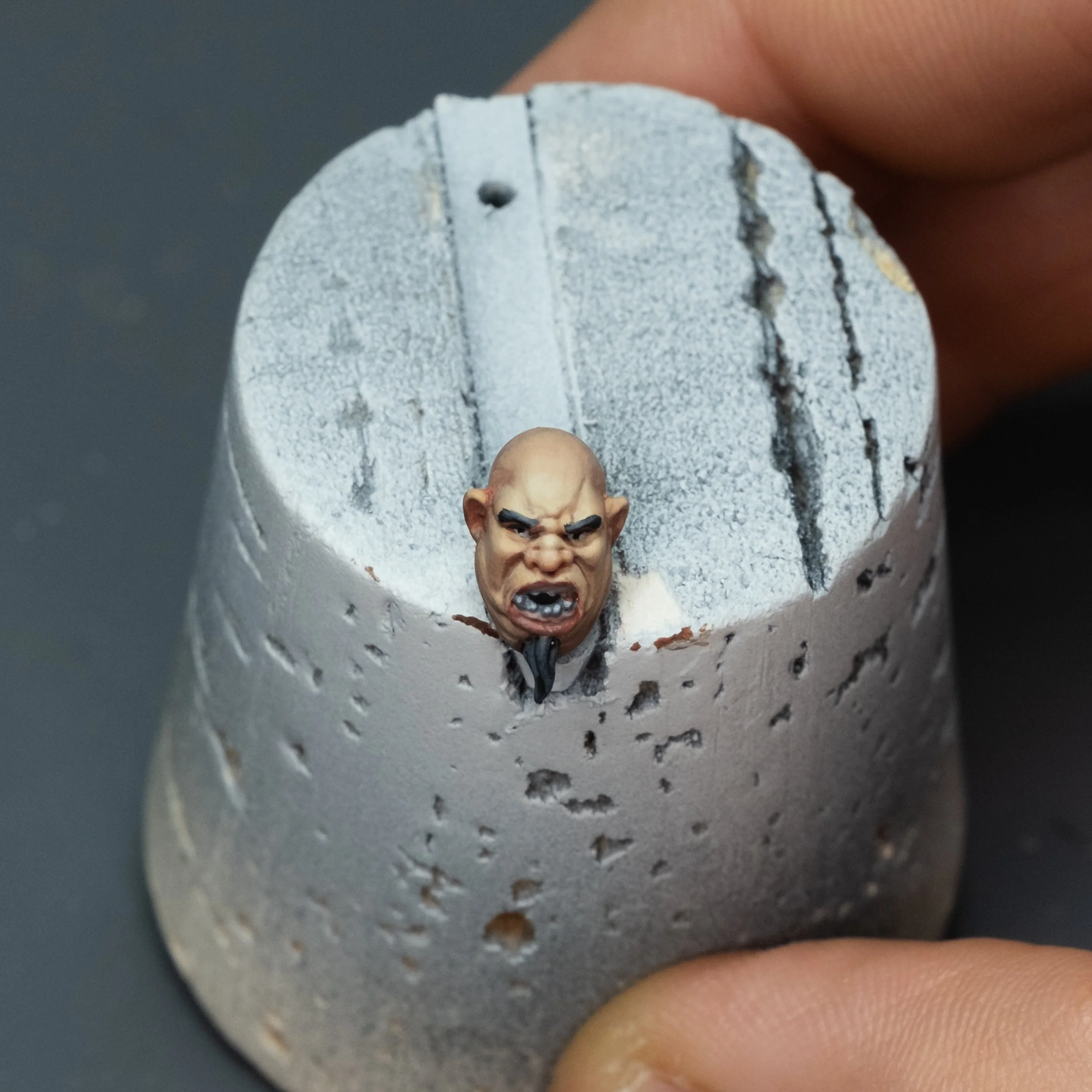 And finally, a new Ogre Head has been painted for the start of the new Skin Challenge Series. As to my disappointment mentioned yesterday, the footage was clipped with so many mis-shots and key strokes being blocked that I needed to shoot it again. For everyone who wants to get ahead in the Skin Challenge and wants to start with an Ogre Head, there is an excellent Necromunda Kit, Jotunn' H-Grade Industrial Servitor Ogryns, which comes with 2 Ogryns and has plenty of options to build with or without armour. Or if you have the Grand Cathay battalion box, the Orge head is taken right from there!